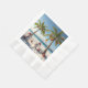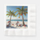Lägg till en stänk av solsken till dina säsongsfiranden med denna tropiska julservett, där festlig glans möter strandlycka. Frodiga gröna palmer tar centerplatsen, dekorerade med glänsande röda och gyllene kulor och inslagna i gnistrande lyktor som elegant snurrar runt varje stam. De livfulla ornamenten svajar försiktigt från bladen och fångar ljuset som juveler i solen.