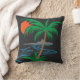 Palmtree vid floden | Tropisk solnedgångskonst Kudde