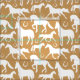 Fabric tryckt med en mönster av vackra hästar, i Palomino häst färg.