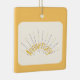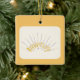 Den här designen har "årsdagen" i färg av gult och svarta spiken. Små hjärtan som spiken. En gyllene bakgrund är en gyllene årsdag. En vit luddig ogenomskinlig del infogas mitt på dekoratet. Den här prydnaden blir en vacker gåva till din kära i 50 år av giftermål. Dessa finns i olika former. Anpassa med din egen information på utsmyckningens baksida.