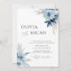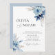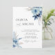 Modern vattenfärgsblått blommigt bröllop med pampasgräs. Texten och färg kan redigeras.