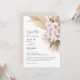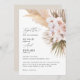Pampas-gräs, handflatan löv, löv och orkidéblomma, naturlig modern, rustisk bröllopsinbjudan. En del av en samling i bröllop. Vackra eleganter, manuslag och naturliga, moderna gräsmattor. Ideal vår, sommar, höst, höst, höst eller vinterbröllop.