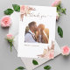 Ett modernt bröllop-tack för ditt fotokort. Vit bakgrund. Dekoreras med rosa och ro guld blommigtar och pampasgräs. Anpassa och lägg till 2 av dina foton och tackkort från bröllop på baksidan