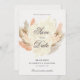 Denna mjuka, jordtoner spara-till-datum är en balanserad blandning av rustik charm och ömtålig elegans, med vackra vattenfärgade torkade blommor och pampasgräs i skuggor av varma beige och dammiga ro. Ordalydelsen "spara datumet" är skriven i ett elegant med ett brunt skript. Under namn, datum och plats för bröllop i ett versalteckensnitt i klassen.