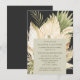Boho ökenbukett efter bröllopsmiddag festinbjudan med handmålad akvarellpalmer, pampasgräs, vita orkidéer och torkade blad i naturliga jordtoner på mörkgrå bakgrund. Anpassa enkelt bakgrunds- och förgrundsfärger, typsnittsstil, layout och lägg till ditt favoritbröllopsfoto på baksidan. Koordinerande inbjudningar och tillbehör finns tillgängliga i butiken.