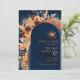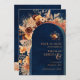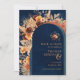 Den moderna QR-koden sparar datumet för bröllopsinbjudan med boho pampas gräsflorelement i terracotta, strålande höststuga med båge mot en marsch blå bakgrund. Lägg till URL:en för din bröllopswebbplats på kortets baksida och QR-koden uppdateras eller tas bort om det inte behövs. Klicka på Anpassa/anpassa ytterligare för att inkludera dina egna uppgifter.