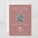 Stunnande, modern bröllopsinbjudan med romantiskt par med pampas gräs boho inslag i rosa, mjuk terracotta och vita sotagar. Gäster kan bara söka igenom QR-koden på baksidan av kortet på webbplatsen bröllop för att få tillgång till information och OSA. En bekväm inbjudan utan att du behöver lägga till separata bilagor. Klicka på att anpassa/anpassa ytterligare för att inkludera din egen information och webbadressen till webbplatsen för att generera din QR-kod. Bakgrunden till färg kan ändras om så önskas. Perfekt för par som erbjuder ett modernt förhållningssätt till sitt bröllop samtidigt som de anammar en naturestesisk charm.