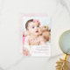 Rosa ros, pampasgräs och handflatan löv och kor-blommigt-pejlfoto "Baptism" "Tack" med en fin rosa-marmorbakgrund på baksidan. Lägg bara till foto, unikt meddelande och slutning, barnets namn och året. Sammansatt design efter Helgdag Hearts Design (reserverade höger) med platshållarfoto via Pixabay.