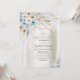 En modern, chic och glamorös inbjudan med pampasgräs och blått ro på elfenbensbakgrund.