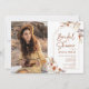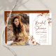 Boho inbjudningskort för möhippan i Terracotta brände orange med ett foto på framsidan. En vacker modern minimalistisk utformning med handmålade botaniska accenter. Med pampas-gräs, löv, ro och typsnitt för typskript med lite hjärta. Trendigets tema för ökentema perfekt för fall, vinter, vår eller sommar. Du kan välja utskrivna inbjudningar och/eller en digital mall för omedelbar nedladdning. Perfekt för en snyggt möhippa.