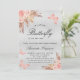 För en modern boho stil babydusch. En faux silver tittar bakgrund. Dekorerad med ro guld och rosa blommigt, rosor, pampasgräs och fjärilar. Anpassa och lägg till information om namn och party.