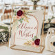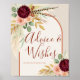 Uppmuntra hjärtliga meddelanden med denna Fall in Love Bridal Shower Advice & Wishes skylt. Visar en handmålad akvarellbukett av djupa burgunderfärgade krysantemum, rosafärgade rosor, gyllene höstlöv, pampasgräs, salvia eukalyptus och rustika fasanfjädrar, inramad av en modern boho terrakotta valv på en neutral ler beige bakgrund. Fullständigt anpassningsbar text låter dig anpassa instruktioner eller uppmaningar till gästerna. Korsförsäljning med matchande inbjudningar, presentkort och skyltar i Fall in Love-eventserien för en koordinerad bröllopsfest.
