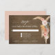 Pampasgräs Boho rosafärgade blommor rustik träbakgrund RSVP-svarskort för att samordna med vår bröllopsinbjudan. Rustik mörk lada träbakgrund framhäver de mjuka pastellfärgade akvarellblommorna. Boho-blommor av rosafärgade och persikorosa rosor med torkade pampasgräs och palmblad för en strandtematiserad, bohemisk öken-, tropisk eller kustnära bröllopsfest. Konstverk skapat av internationellt licensierad konstnär och produktdesigner, Audrey Jeanne Roberts, upphovsrätt
