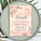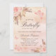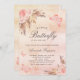 För en modern boho stil babydusch. A ro guld, rosa, skorstensbildning mot metallisk tittar bakgrund. Dekorerad med ro guld och rosa blommigt, rosor, pampasgräs och fjärilar. Anpassa och lägg till information om namn och party.