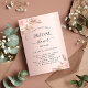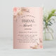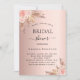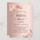För en modern boho stil möhippa. En ro-guld tittar metallisk bakgrund. Dekoreras med ro guld och rosa blommigt, rosor och pampasgräs. Anpassa och lägg till information om namn och party.