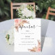 Vit bakgrund. Dekorerad med roséguld och rosa blommor, rosor och pampasgräs. Med texten: Öppen bar. Anpassa och lägg till din barmeny.