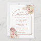 Vackra blomsterliga pampasgräs vattenfarger och chic båge inramar dina speciella spara-datum detaljer i stilfull terrakotta typografi och dina initialer på baksidan av denna eleganta bröllopsinbjudan. Designad av Thisisnotme©