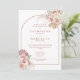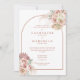 Vackra blomsterliknande pampasgräs vattenfarger och en chic båge inramar detaljerna för din speciella förlovningsfest, satta i stilfull terrakotta-typografi och era initialer på baksidan av denna eleganta bröllopsinbjudan. Designad av Thisisnotme©