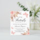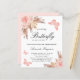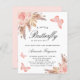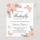 För en modern boho stil babydusch. En vit bakgrund på framsidan. Dekorerad med ro guld och rosa blommigt, rosor, pampasgräs och fjärilar. Anpassa och lägg till information om namn och party. Tillbaka: rosa - bakgrund