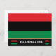 Postkort (flaggor): Panafrikanska flaggan symbol - UNIA / En horisontell triband av rött, svart och grönt. Den panafrikanska flaggan—också känd som den afroamerikanska flaggan, Black Liberation-flaggan, UNIA-flaggan. Används ofta med Black Lives Matter-rörelsen.
