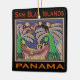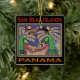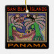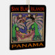 Kuna indisk mola, tropiska öar, man i hammock, öapor, handflatan träd, San Blas-öarna, Panama, Virginia Vivier, Vagabond Folk Art, svart blått, gult orange grönt.