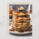 Hela skorsten av pannkakor med tappningssirap och en smörbit för frukost av pannkaka i inbjudan