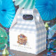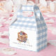 This cute "pancakes & pacifiers" boy's baby shower/brunch favor box features a white and blue gingham background with pancakes, berries and a blue pacifier. Personalize it for your needs. You can find matching products at my store.