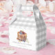 This cute "pancakes & pacifiers" gender-neutral baby shower/brunch favor box features a white and gray gingham background with pancakes, berries and a gray pacifier. Personalize it for your needs. You can find matching products at my store.
