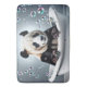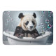 Cute panda björn i ett vitt badkar med iridescent tvålbubblor