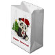 Den här julklappen har en söt tecknad-panda som är klädd i en röd julhatt och som håller ett rött och vitt strippat candy cane. Bakom honom ligger en grönt helgdag träd med en guld stjärna. Under bilden visas det röda anpassadet God jul. Bilden och texten placeras på en vit bakgrund. Baksidan av påsen har en annan bild av samma björn som haltar på candy cane. Din anpassningsbar står under björnen. Särskilt tilltalande för barn! *Tack vare Real Deal Clipart för den urdel som används för att skapa den här designen. http://realdealclipart.com *