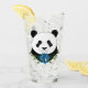 Porträtt i en söt Panda-björn med en blå lotus blomma i en grönt
