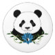 Porträtt i en söt Panda-björn med en blå lotus blomma i en grönt