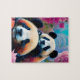 Panda Bear och Unge med Flowers Pussel