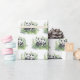 Vattenskärtad panda bär i bamboo löv på vit bakgrund.