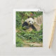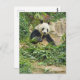 A beautiful photograph of a cute panda eating bamboo printed on a postcard.