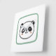 A cute painted-style panda with soft blushing cheeks, framed by a cool green square in a playful minimalist design.
