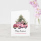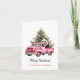 Panda i Rosa Vintage Van Julehälsningskort. Vattenfärgen teckning i vit panda björn i rosa vintage lastbil och Julgranar med rosa baubles. Personlig.