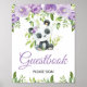 Panda Lila Blommigt Greenery Bamboo Guestbook-teck Poster