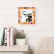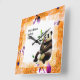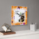 Panda med Orange Flower Ram Fyrkantig Klocka