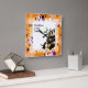 Panda med Orange Flower Ram Fyrkantig Klocka