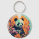 Panda om solnedgång med blommor, blommigt nyckelring