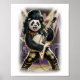 Panda Rocker has Fun playing Hard Rock on a White Poster