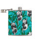 Handdragen mönster med gigantisk panda unge som klättrar upp i grenar och bambu löv.