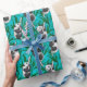 Handdragen mönster med gigantisk panda unge som klättrar upp i grenar och bambu löv.