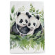 Cute vattenfärgspanda björnar i grönt bamboo löv på vit bakgrund.