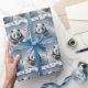 En pandabjörn skapar på ett snöslandskap och en flod av snö runt den.