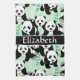 Gulliga svartvita pandabjörnungar som ett mönster med bambur och en grön bakgrund som du kan skräddarsy. Personifiera denna Pandabjörndesign med något namn.