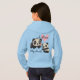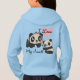 Två pandabjörnar, ett litet och en vuxen, en rosa hjärta, rosa blommor och text, som läser mig, älskar min moster på pandabjörnT-tröja, hänger lös, rånar, knäppas, kort och andra objekt.