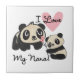 Två pandabjörnar, en bebispanda och den nana pandaen med en rosa hjärta och text, som läser mig, älskar min Nana på T-tröja, bodysuits, hänger lös, muggar, kort, klistermärkear, nyckelringar, magneter och andra objekt!