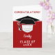 Pandemiskt Student Studenten Hat med Ansikte Mask Card. Lustigt studenten-kort med studentmössa och ansikte-mask på rött. Lägg till året, namn och meddelandet i.